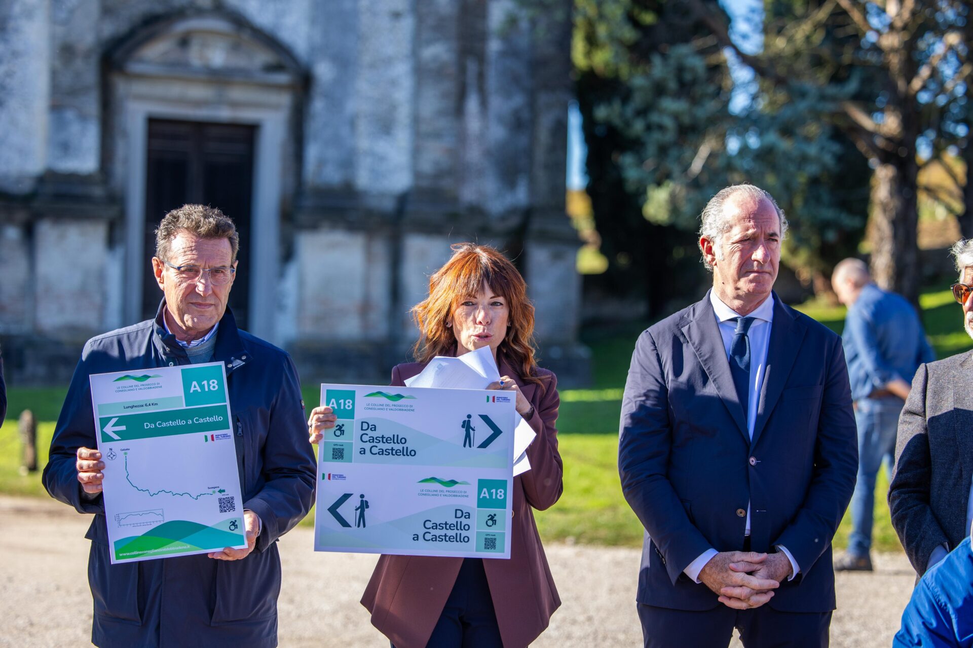 Il taglio del nastro ha visto la partecipazione delle autorità locali e di figure significative del mondo paralimpico. Presenti: il Presidente della Regione Veneto Luca Zaia, il Sindaco di Susegana Gianni Montesel, la presidente dell’Associazione per il patrimonio delle Colline del Prosecco di Conegliano e Valdobbiadene Marina Montedoro, il progettista Giovanni Carraro. Tra gli ospiti il Presidente del Comitato Paralimpico Davide Giorgi.